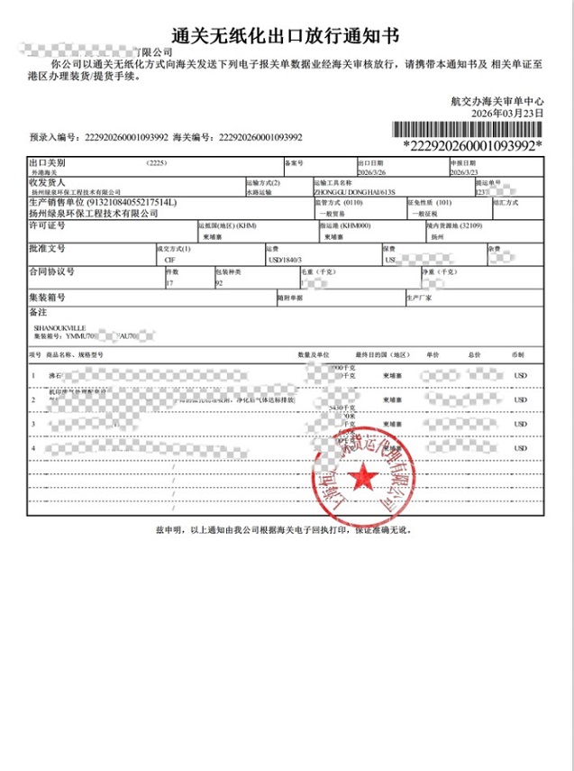 Časová os pre túto dodávku bola údajne napätá a vysoko efektívna. 22. dňa bolo zariadenie úspešne vyzdvihnuté a hneď v ten istý deň naložené na plavidlo. Následne 26. dopravca úspešne vyplával a prepravil vybavenie do Kambodže po vodnej ceste. Táto dodávka nielenže demonštruje vysoko efektívne možnosti realizácie spoločnosti Lvquan Environmental v oblasti riadenia cezhraničnej logistiky, ale ukazuje aj jej vedúce technologické postavenie v oblasti spracovania priemyselných odpadových plynov pre polygrafický priemysel.